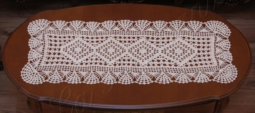 Tradycyjne bieżniki szydełkowe produkowane są w Polsce od pokoleń i niezmiennie cieszą się dużą popularnością. Oferowany przez nas bieżnik Wachlarze wykonany jest ręcznie, metodą szydełkową wymagającą precyzji i zaangażowania. Stanowi prawdziwe dzieło sztuki i wspaniale komponuje się z stylowymi meblami.