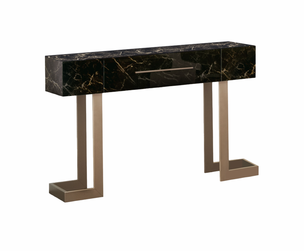 Toaletka z kolekcji Arr Luce Dark to esencja klasy i prestiżu. Jej unikalny design wyróżnia się geometrycznymi nóżkami, które dodają meblowi wyjątkowego charakteru. Kontrastujące kolory oraz wysoki połysk wykończenia nadają jej nowoczesnego i ekskluzywnego wyglądu, który zachwyca już na pierwszy rzut oka.