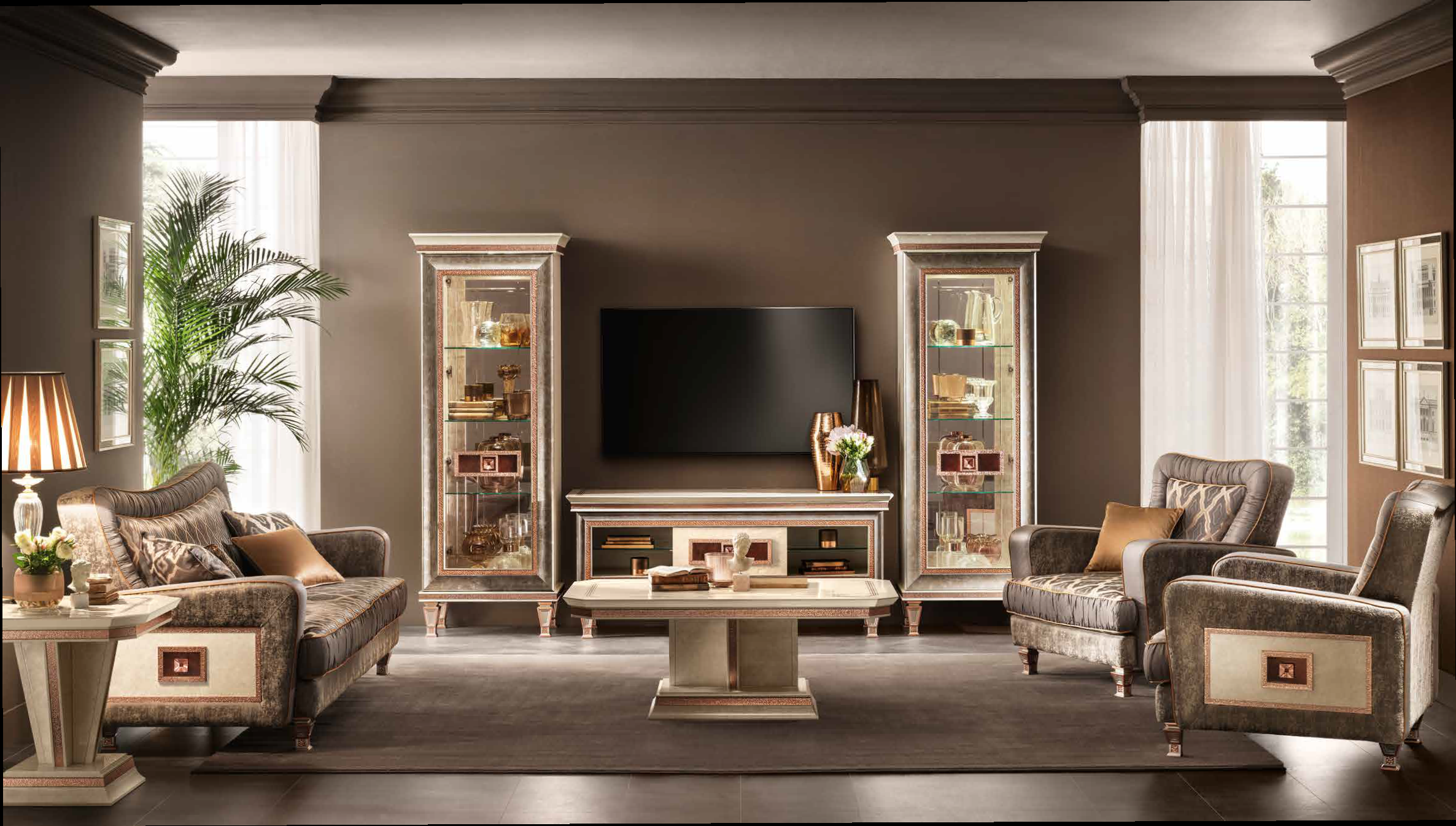 Zestaw RTV Arr Dolce Vita to doskonały przykład włoskiego designu, który łączy elegancję, funkcjonalność i najwyższą jakość wykonania. Meble stworzone z niezwykłą dbałością o szczegóły, które zachwycają swoją subtelną formą i solidnością. Zestaw doskonale wpisuje się w nowoczesne oraz klasyczne wnętrza, wprowadzając do przestrzeni wyjątkowy, luksusowy akcent.