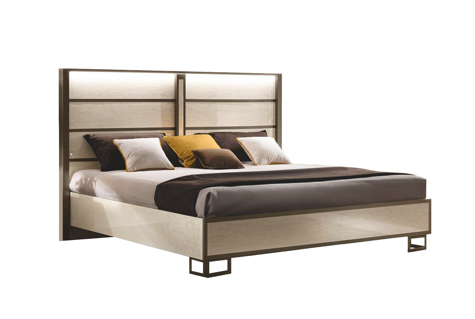 Łóżko z kolekcji mebli Poesia do sypialni to połączenie współczesnej nowoczesności z elegancją na najwyższym poziomie. Meble doskonale będą się prezentować we wnętrzach urządzonych w aranżacji nowoczesnej. Sypialnia Poesia wyróżnia się niecodziennym połączeniem ciemnych i jasnych materiałów o różnych fakturach, które dopełnia oświetlenie wezgłowia. Łóżko dzięki geometrycznym formą zarówno wezgłowia jak i nóżek zachwyca swą elegancją i prostotą jednocześnie. Najwyższej jakości materiały, perfekcyjne włoskie wykonanie oraz wyszukane detale sprawiają że nazwa Poesia doskonale pasuje do tej kolekcji. Łóżko może mieć długość spania do wyboru 190 lub 200 cm.