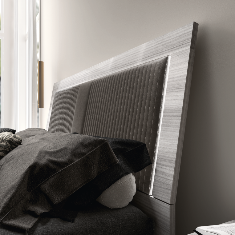 Nowoczesne włoskie wzornictwo na najwyższym poziomie. Perfekcyjna, prosta forma wykonana z niesłychaną starannością. Cała kolekcja Mia wykonana jest w pięknym i niezwykle charakterystycznym odcieniu srebrzystego eukaliptusa w wysokim połysku. Lekkości i przytulności dodaje niezwykłe tapicerowane wezgłowie w którym po bokach znajduje się oświetlenie. Światło w wezgłowiu posiada możliwość kontroli intensywności a wyłączniki znajdują się po lewej i prawej stronie w jego górnej części. Łóżko Mia niewątpliwie zachwyca swym wzornictwem a tapicerowane wezgłowie z wbudowanym oświetleniem dodaje mu charakteru a zarazem funkcjonalności.