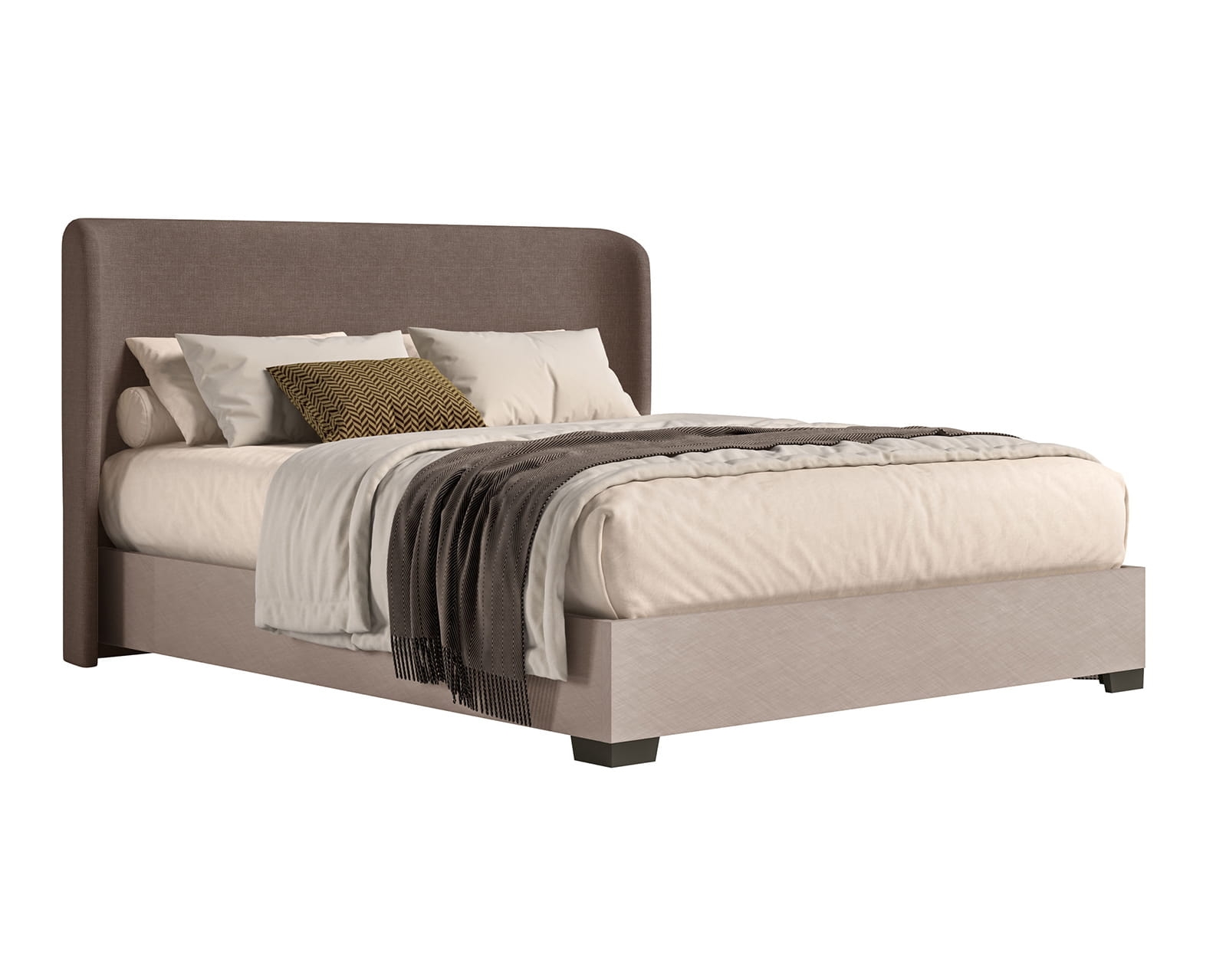 Łóżko SE Silvia z miękkim, obłym wezgłowiem to połączenie komfortu i nowoczesnej estetyki. Tapicerowane w eleganckich odcieniach, do wyboru mokka lub piaskowym, przyciąga wzrok swoją subtelną formą i wysoką jakością wykonania.