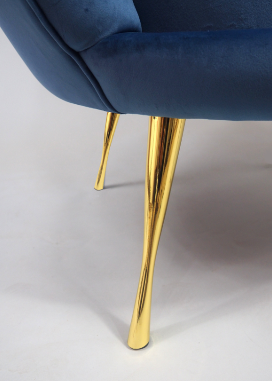 Fotel pasuje do stylu glamour, polecam kolor granatowy w połączeniu ze złotymi nóżkami.