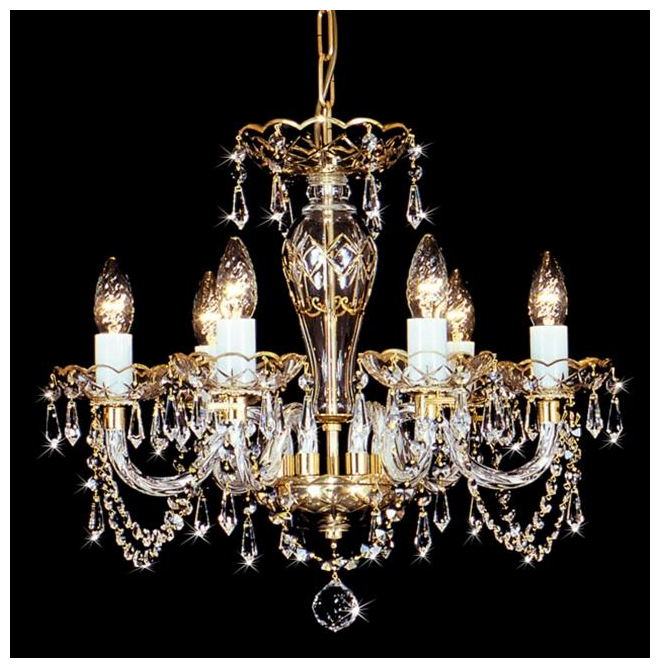 Śliczny żyrandol, bardzo bogato zdobiony, kryształy są wysokiej jakości.