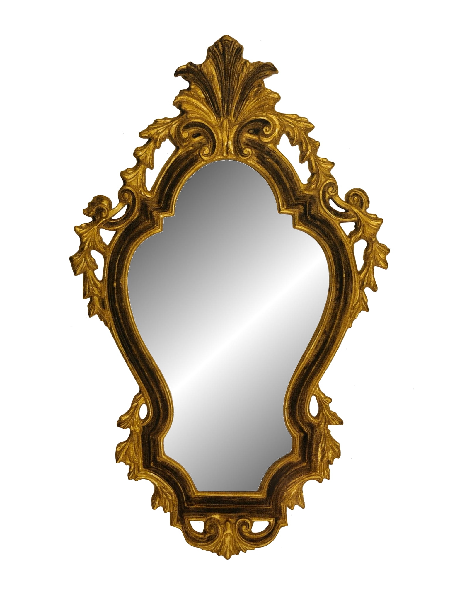 Lustro w niestandardowym kształcie, ma piękną ramę.