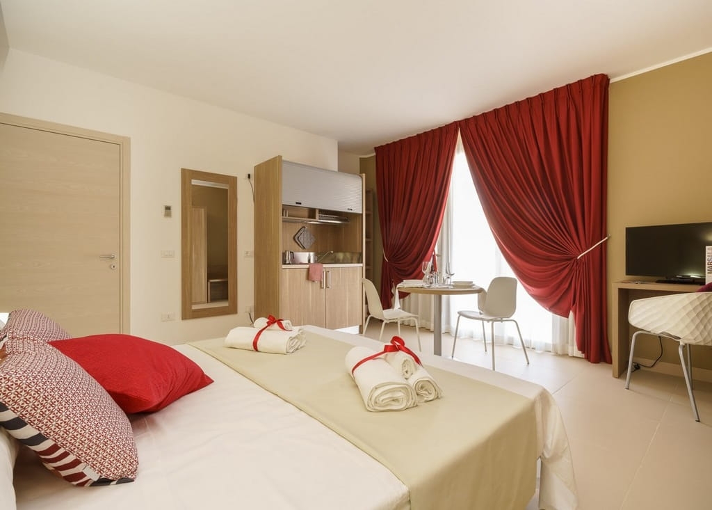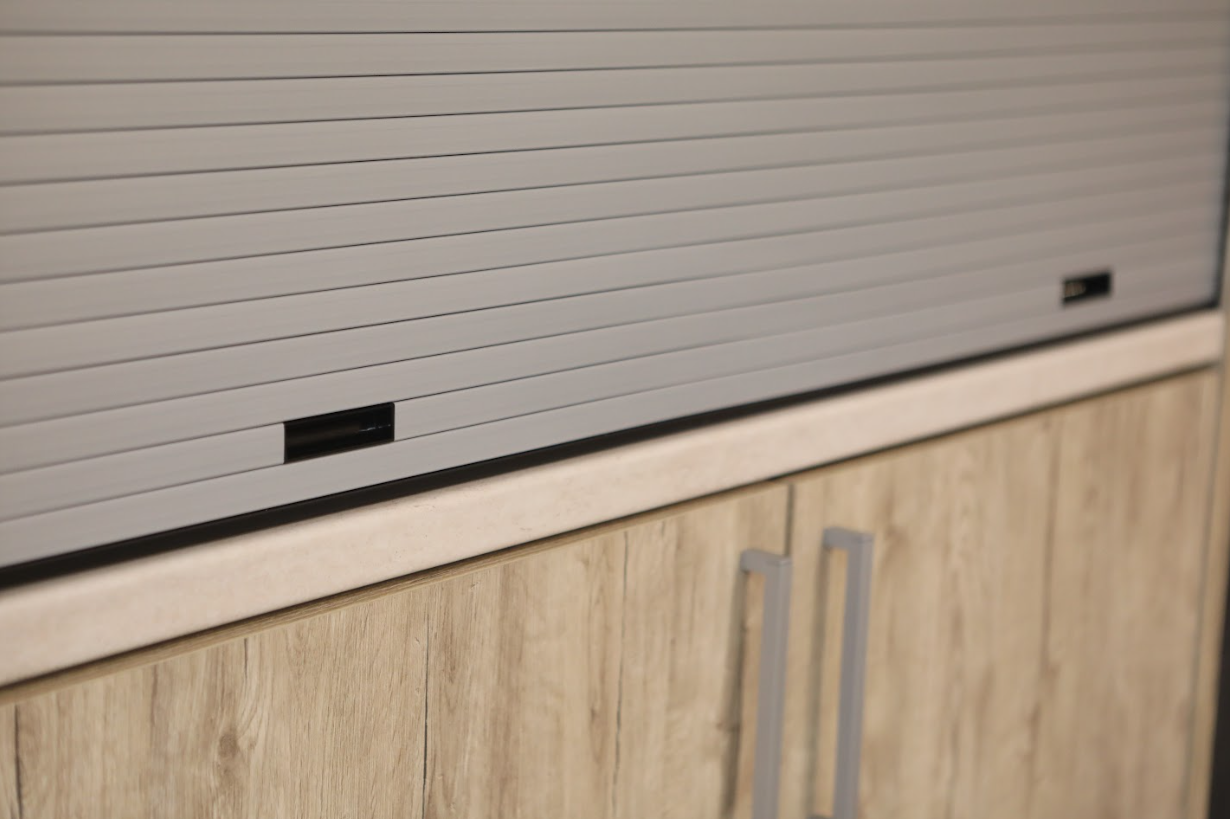 W skład zestawu wchodzi: minikuchnia z roletą, wodoodporny blat z laminatu, sprzęt AGD, zlewozmywak wraz z ociekaczem, kran oraz syfon, suszarka do naczyń, pojemnik na śmieci, a także listwa przypodłogowa PVC w kolorze srebrnym.