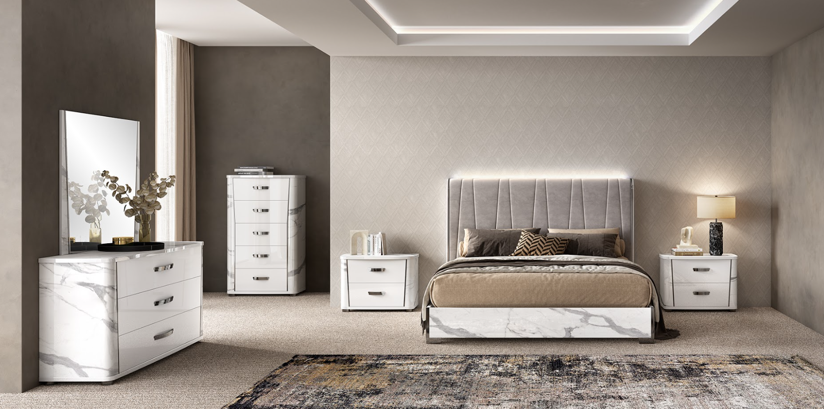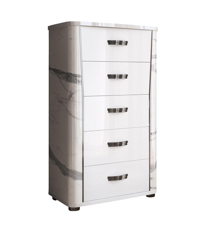 Dodaj stylu swojemu wnętrzu dzięki eleganckiej komodzie z pięcioma szufladami z kolekcji ST Anna. Ta komoda, stworzona z najwyższą precyzją, harmonijnie łączy nowoczesny design z klasyczną włoską elegancją. Imitacja marmuru nadaje jej luksusowy charakter, idealny do różnych aranżacji wnętrz.