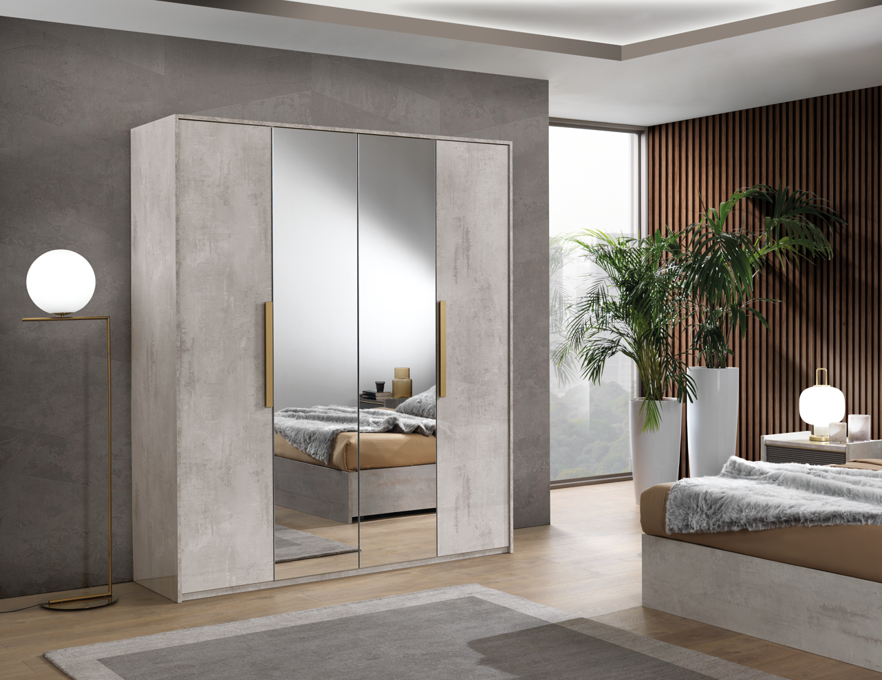 Szafa AD Sole zachwyca minimalistycznym designem, w którym czyste linie, betonowa struktura oraz lustrzane fronty nadają wnętrzu nowoczesny i przestronny charakter. To idealne rozwiązanie dla osób ceniących wysoką jakość wykonania, trwałe materiały oraz dbałość o detale.