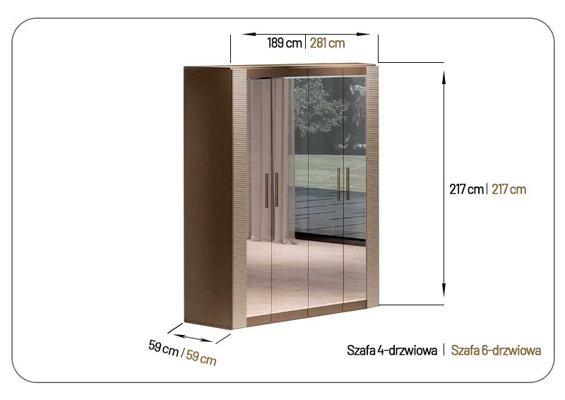 Dostępna w dwóch rozmiarach, co pozwala dopasować ją do indywidualnych potrzeb i wymiarów pomieszczenia. Idealna do sypialni, garderoby, a nawet przedpokoju.