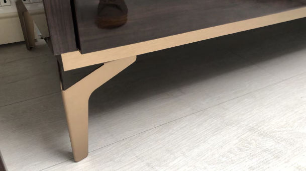 Mebel wykonany w laminacie niskociśnieniowym w kolorze orzecha włoskiego, lakier akrylowy o wysokim połysku. Materiał charakteryzuje się dużą wytrzymałością na ścieranie, zarysowania oraz uderzenia, co czyni go odpornym na uszkodzenia w codziennym użytkowaniu.