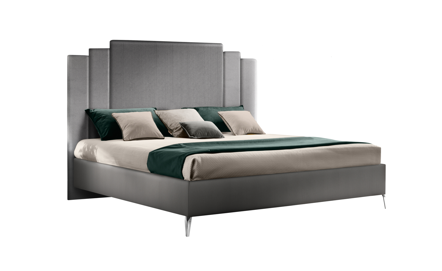 Łóżko z kolekcji mebli Moderna świetnie będzie się prezentować w nowoczesnym wnętrzu. Sypialnia Moderna występuje w odcieniach szarości i grafitu. Tapicerowane wezgłowie nadaje w pomieszczeniu przytulności, mimo chłodnych kolorów. Meble wykonane z wysokiej jakości materiałów. Możliwa jest zmiana nóżek w łóżku oraz koloru tkaniny. Łóżko dostępne jest również z powierzchnią spania 160x200 oraz 200x200