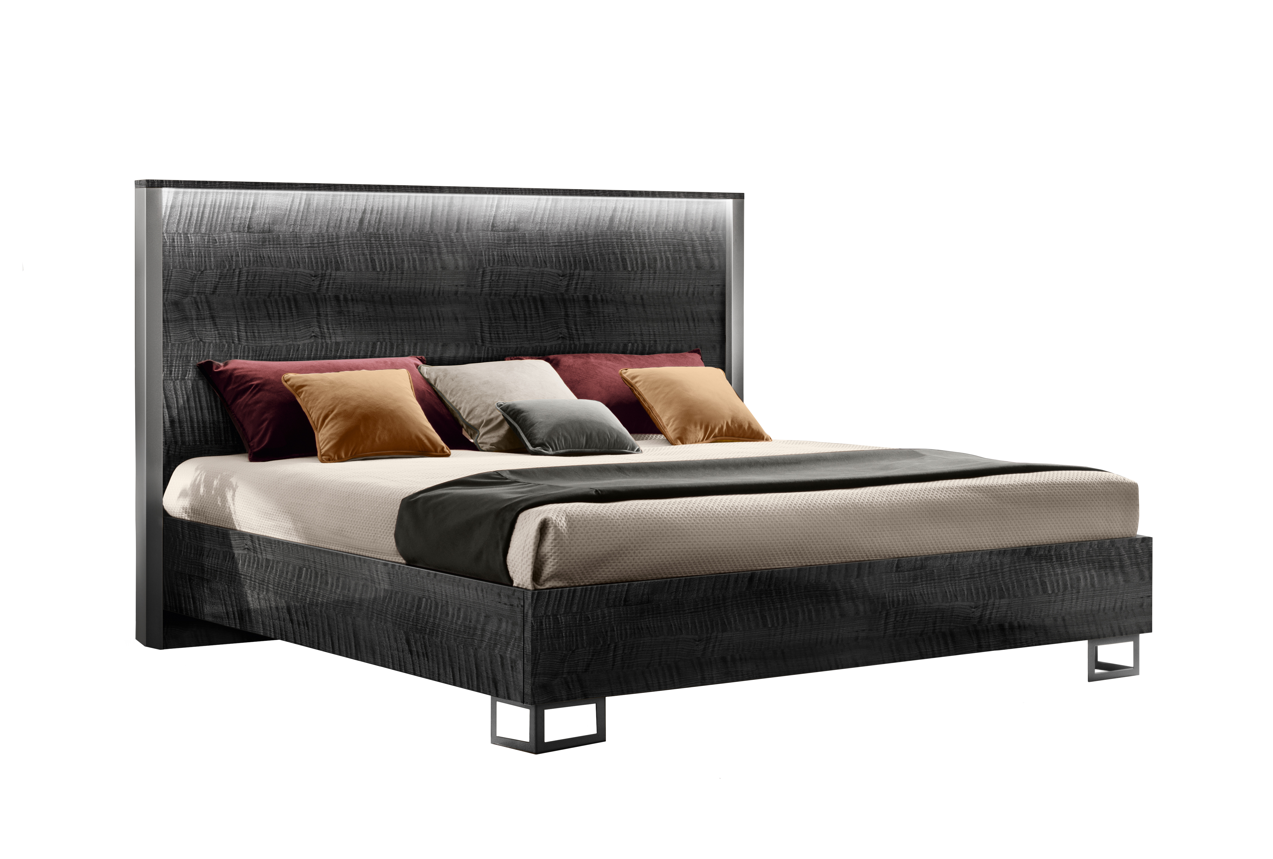 Łóżko z kolekcji mebli Moderna świetnie będzie się prezentować w nowoczesnym wnętrzu. Sypialnia Moderna występuje w odcieniach szarości i grafitu.Wezgłowie jest elegancko podświetlane. Meble wykonane z wysokiej jakości materiałów. Możliwa jest zmiana nóżek w łóżku. Możliwe jest wykonanie powierzchni spania 200x200
