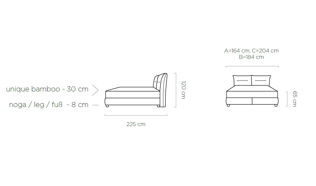 | Łóżko | 164/184/204x225x120h |