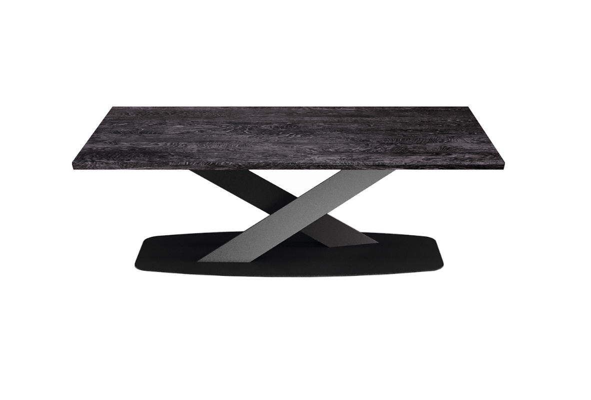 Noga w kształcie litery X: Nowoczesna i stabilna konstrukcja, która przyciąga wzrok i nadaje stolikowi wyjątkowego charakteru.