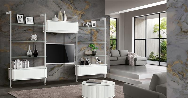 Wprowadź do swojego salonu nutę nowoczesnej elegancji dzięki temu stylowemu, okrągłemu stolikowi kawowemu. Białe wykończenie nadaje mu lekkości i świeżości, a srebrny lub złoty akcent subtelnie podkreśla jego wyjątkowy charakter. Całość dopełniają dekoracyjne frezy w formie pionowych linii, które dodają meblowi wyrazistości i stylowego rytmu.
