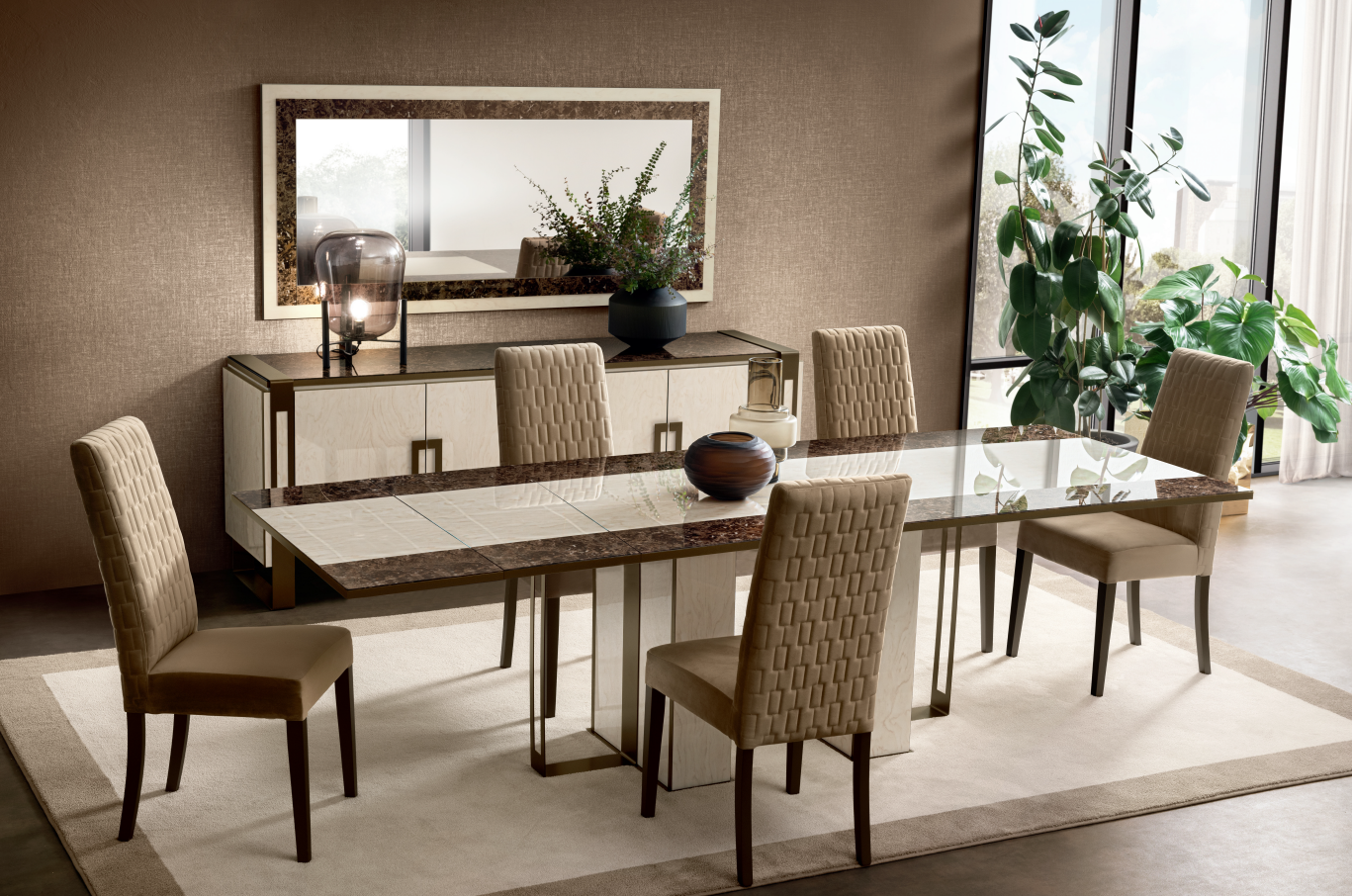Stół jadalniany Poesja to włoski styl w nowoczesnym wydaniu. Doskonała precyzja wykonania w połączeniu z włoskim wzornictwem daje poczucie niesłychanej elegancji. Dwukolorowy blat w połączeniu z masywnymi nogami wykończonymi ażurowym ozdobnikiem czyni jadalnie niesłychanie stylową. Powierzchnia blatu pokryta lakierem dosłownie błyszczy a jego użycie nie tylko podnosi walory estetyczne ale i zwiększa wytrzymałość mebla. Stół doskonale sprawdzi się we wszystkich wnętrzach, zarówno tych nowoczesnych jak i minimalistycznych czy w stylu glamour.