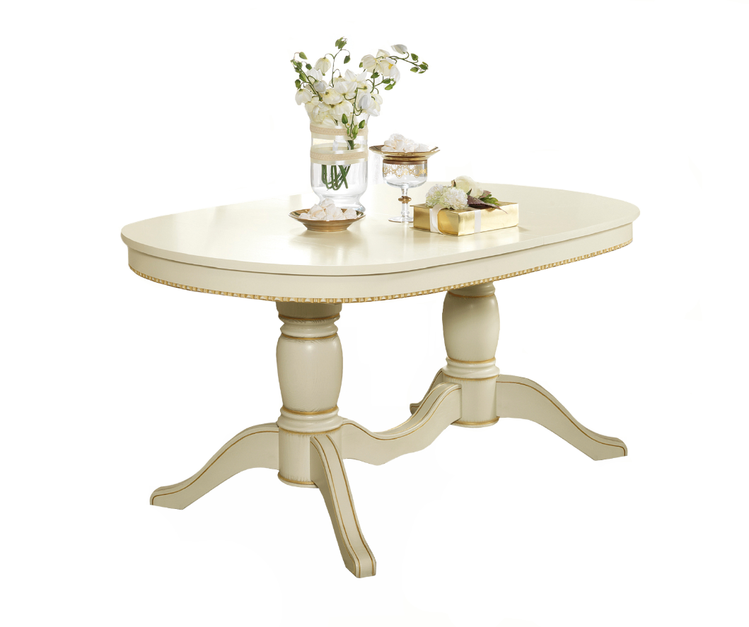 Kolekcja mebli do jadalni Treviso Day White to kolekcja reprezentująca klasyczne, włoskie wzornictwo wyrażone harmonijnymi proporcjami, dekoracyjnymi rzeźbieniami, eleganckimi ręcznie zdobionymi nóżkami z litego postarzanego drewna. Jadalnia jest wykonana jest z najwyżej jakości materiałów w kolorze eleganckiej antycznej bieli z elementami starego złota we frezowanych elementach mebla.