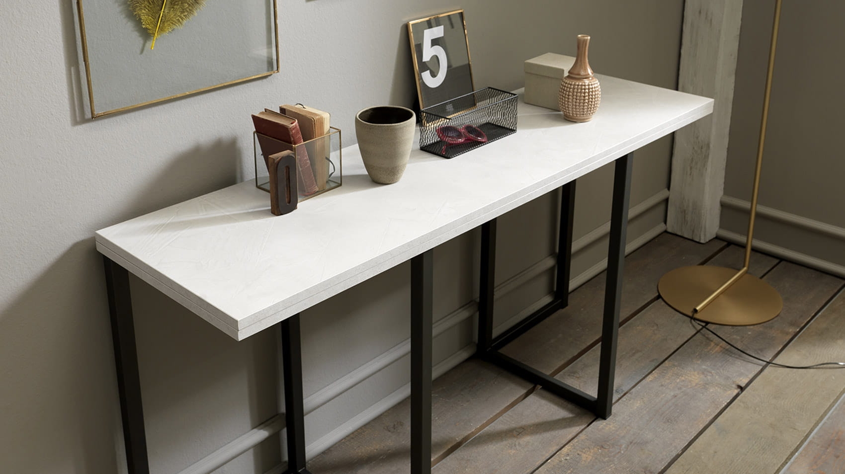 Rozkładana konstrukcja: konsola wyposażona jest w innowacyjny system , który umożliwia łatwe rozkładanie blatu do większych rozmiarów, zapewniając dodatkową powierzchnię, gdy zajdzie taka potrzeba.