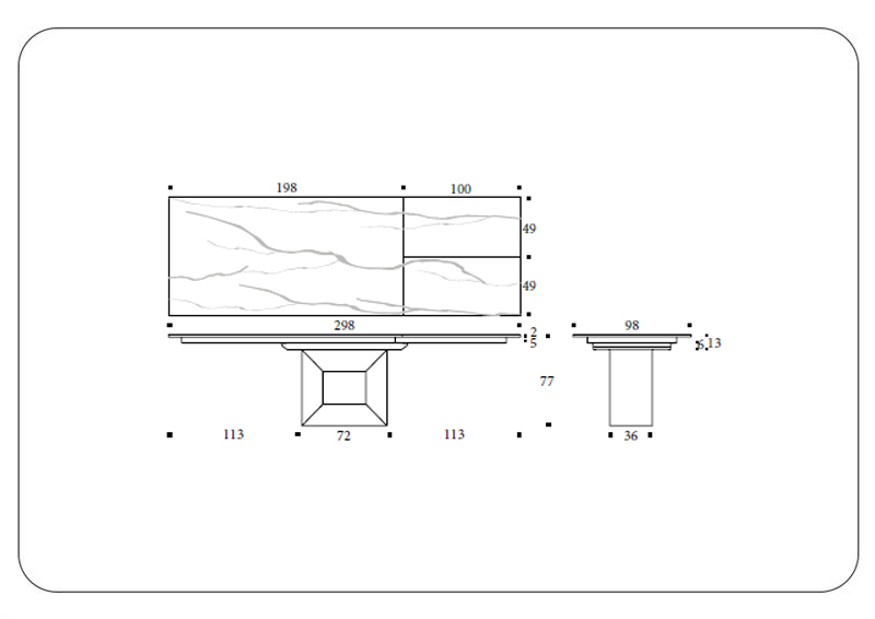 Dla osób ceniących perfekcyjną harmonię, stół posiada wkładki z liniami imitującymi naturalny kamień, które idealnie łączą się z wzorem głównego blatu, tworząc efekt spójnej, jednolitej powierzchni.