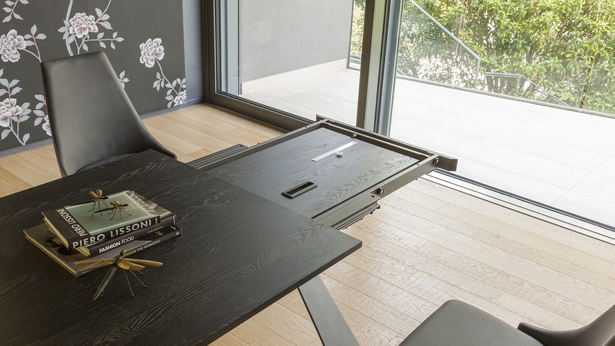 Istniej możliwość zakupu stołu z ceramicznym blatem 3mm gdzie ceramiczna wkładka zachowuje ciągłość wzoru (żyłowania). Zapewnia spójny i estetyczny wygląd blatu nawet po rozłożeniu. Produkt na specjalne zamówienie w cenie 12 092 zł.