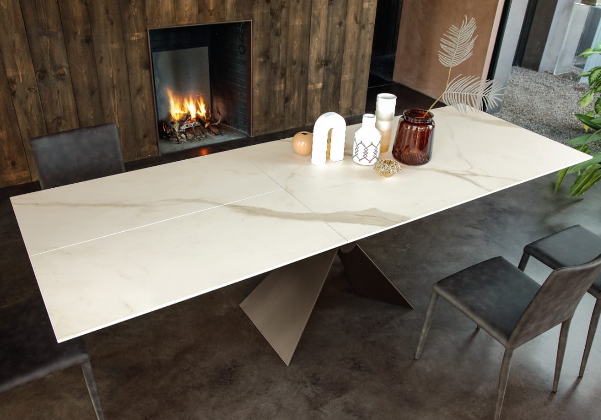 W wariancie ceramika 3mm na specjalne życzenie klienta wkładka może być wykonana z tego samego materiału co stół i posiadać spójny wzór, cena stołu wynosi wtedy 11 509 zł. - jeśli jesteś zainteresowany takim rozwiązaniem prosimy o kontakt z doradcą.