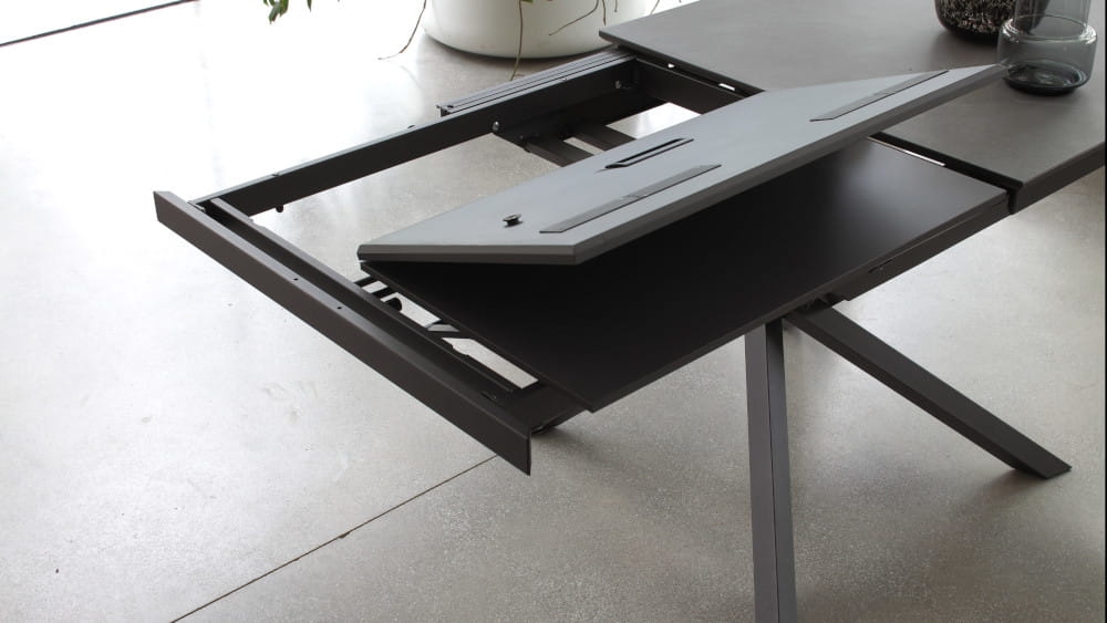 Mechanizm rozkładania: Teleskopowy mechanizm z synchronizowaną wkładką typu „książka” umożliwia płynne rozłożenie blatu, zwiększając przestrzeń dla gości.