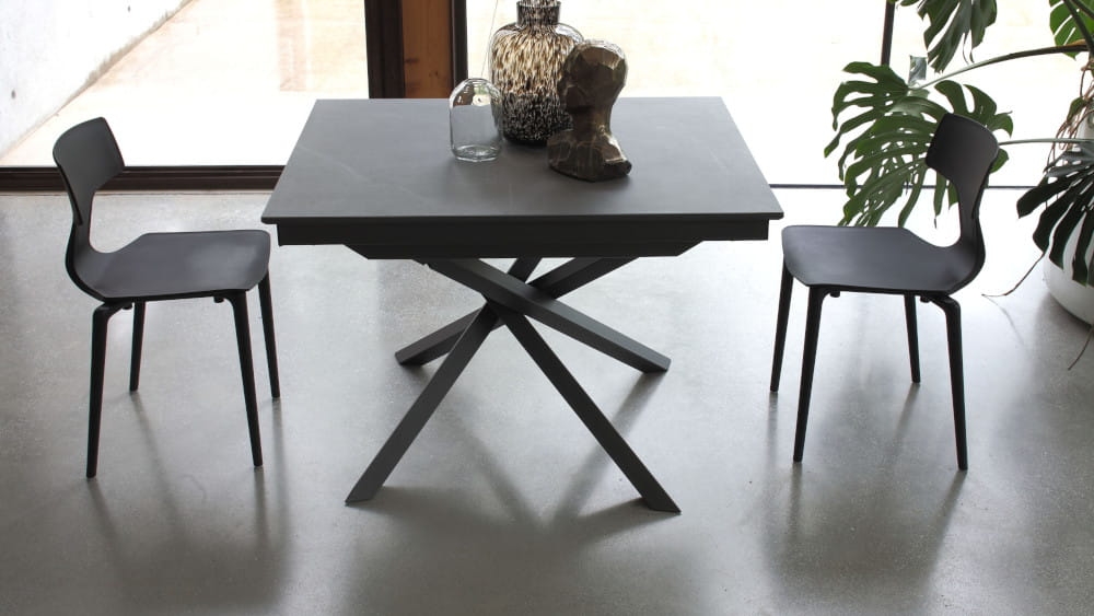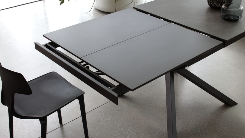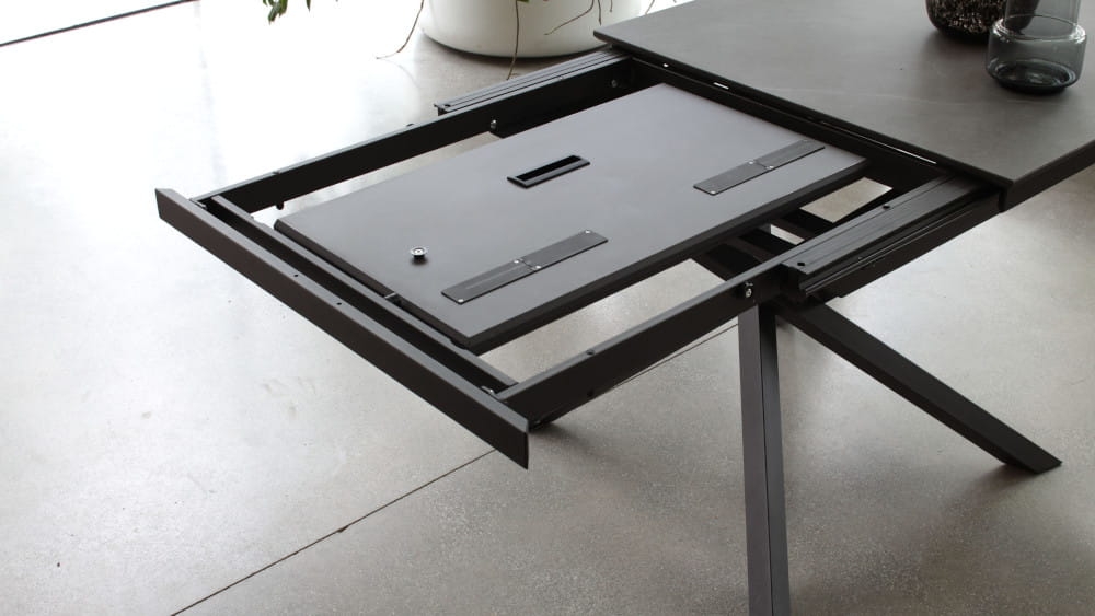 Podstawa: Wytrzymała metalowa konstrukcja zapewnia stabilność, nawet przy pełnym rozłożeniu, a nowoczesny design centralnej podstawy ułatwia ustawienie krzeseł wokół stołu.