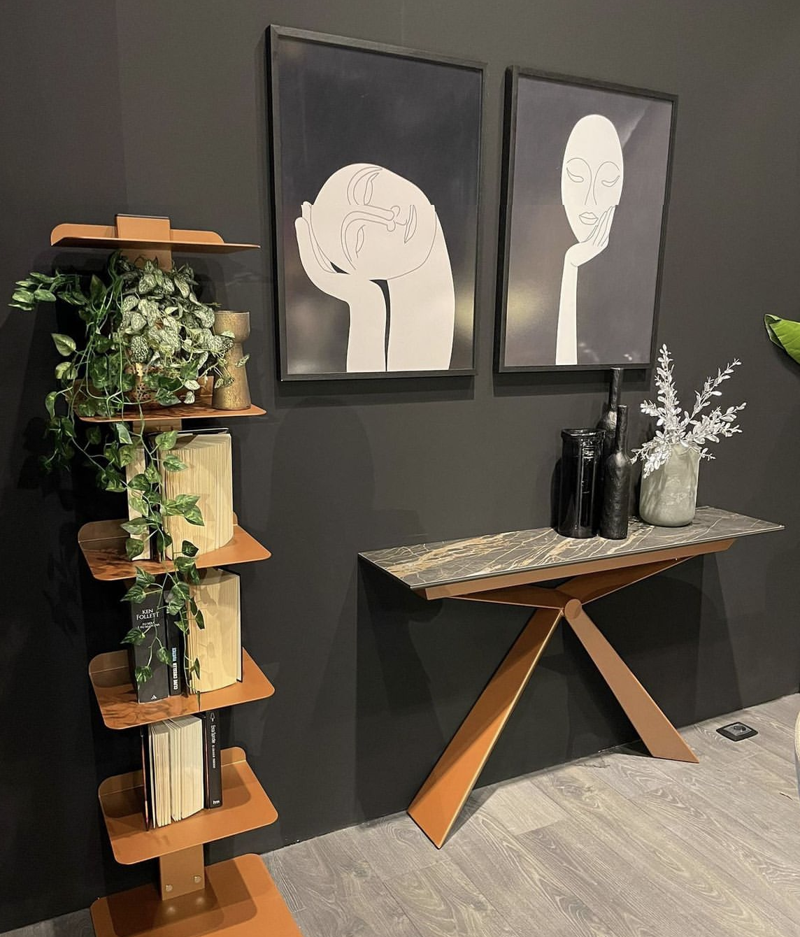 Blat: Wykonany z melaminy, forniru drewnianego, z efektem betonu lub ceramiki, co pozwala na dopasowanie wyglądu konsoli do stylu wnętrza.