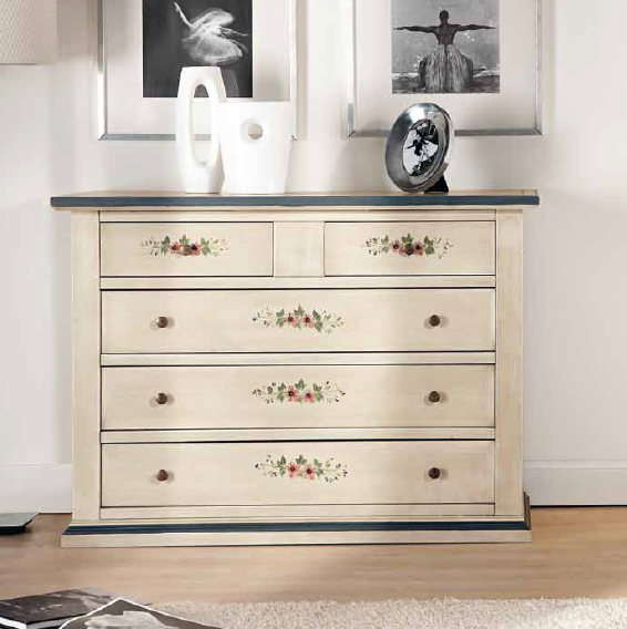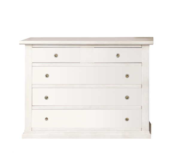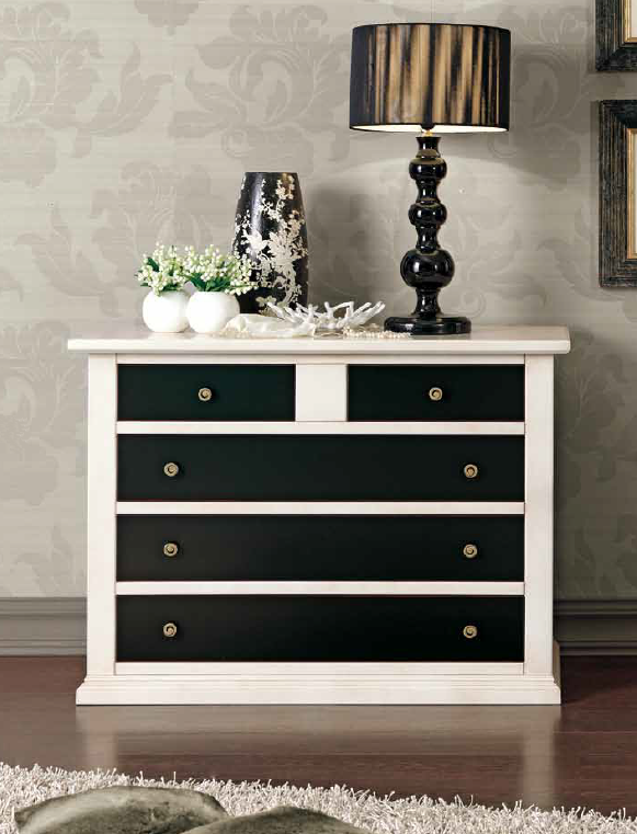 Efektowna komoda włoska 4432/MM zachwyca ciekawym designem i jakością wykonania. Mebel ma solidną konstrukcję i składa się z pięciu szuflad oraz blatu. Komoda z powodzeniem posłuży w eleganckiej sypialni lub w salonie. Mebel ma ponadczasową formę i będzie wyjątkową ozdobą każdego pomieszczenia. Stylowa komoda 4432/MM dostępna jest w wielu wersjach kolorystycznych, prezentowanych w katalogu wybarwienia drewna. Mebel został wykonany z litego drewna orzechowego w połączeniu z płytą fornirowaną drewnem orzecha.