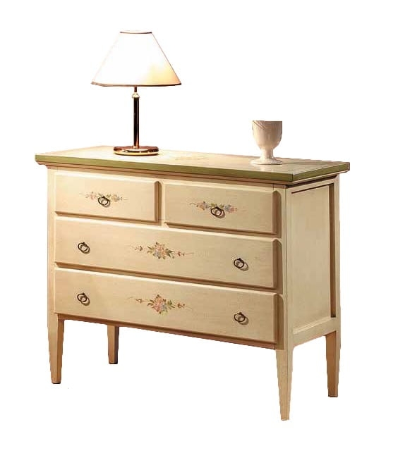 Komoda LE V1111/A to wyjątkowy mebel, który łączy klasyczny włoski design z unikalnym zdobieniem. Blat wykonany z płyty stolarskiej fornirowanej drewnem orzechowym nadaje jej subtelną elegancję, a nogi z litego drewna orzechowego zapewniają solidność i trwałość. Front komody zdobią zielone motywy roślinne, które dodają meblowi artystycznego charakteru i naturalnego uroku. Ta stylowa komoda idealnie wkomponuje się w eleganckie wnętrza, oferując przestronną opcję przechowywania i stanowiąc piękny element dekoracyjny. Doskonała do salonu, jadalni czy gabinetu, komoda LE V1111/A wprowadza do przestrzeni luksusowy, włoski styl z subtelnymi, roślinnymi akcentami.