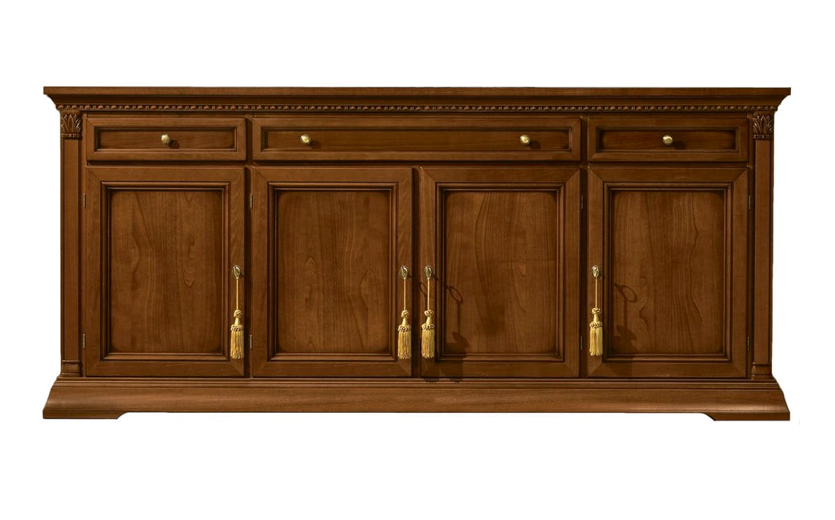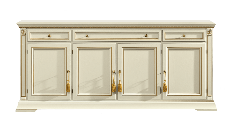Stylowa komoda Treviso to solidny, włoski mebel który zachwyca niebanalnym designem i najwyższą jakością wykonania. Klasyczny kształt podkreślają delikatnie zarysowane nogi. Komoda posiada 3 szuflady, oraz trzy szafki. Delikatne zdobienia na górnej krawędzi prezentują się niezwykle. Drzwiczki szafek mogą być ozdobione chwostami, co podkreśla dodatkowo klasyczny charakter mebla. Komoda wpasuje się w przestrzeń jadalni, salonu lub gabinetu. Komoda to doskonałe dodatkowe miejsce do przechowywania. Stylowa komoda dostępna jest w dwóch odcieniach - czereśni oraz bielonego jesionu.