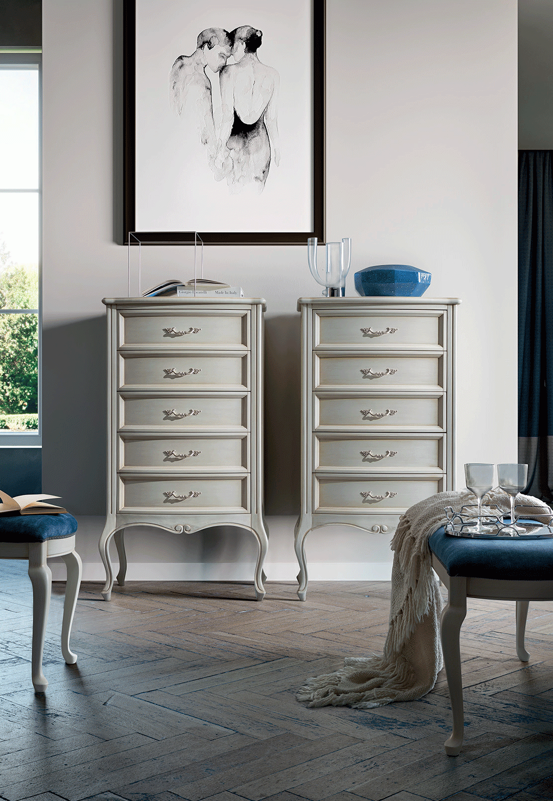 Wysoka komoda z kolekcji Verdi w kolorze avorio to kwintesencja włoskiej elegancji, połączonej z funkcjonalnością. Jej smukła, klasyczna forma została wzbogacona o gięte nogi, które dodają jej subtelności i wyrafinowania. Dzięki harmonijnym proporcjom i pięknemu wykończeniu doskonale wpasuje się w stylowe wnętrza, od klasycznych po glamour.