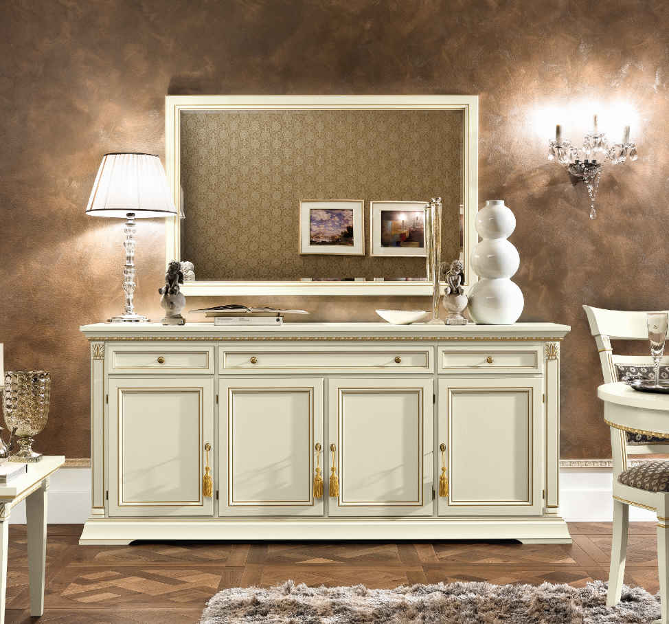 Zapraszamy do naszego sklepu internetowego, aby odkryć komodę z lustrem z kolekcji Treviso. Ten imponujący mebel łączy w sobie piękno włoskiego wzornictwa z praktycznymi funkcjonalnościami, oferując cztery drzwi do przechowywania oraz duże lustro o wymiarach 140x90 cm.