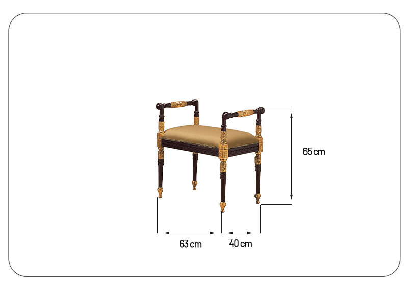 Ławeczka 171/K to wyjątkowy mebel włoskiej produkcji, który łączy klasyczną formę z nowoczesnym komfortem. Jej konstrukcja z litego drewna bukowego zapewnia trwałość i solidność, a tapicerka wykonana metodą nowoczesną – z gąbki poliuretanowej, pasów tapicerskich, płótna (surówki) oraz dekoracyjnej tkaniny – gwarantuje wygodę i estetykę.