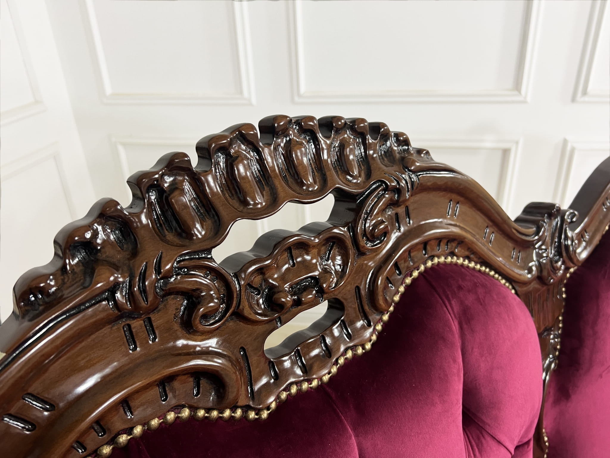 Jej solidna konstrukcja z litego drewna bukowego zapewnia stabilność i trwałość przez wiele lat. Tapicerka wykonana nowoczesną metodą – z gąbki poliuretanowej, pasów tapicerskich, płótna (surówka) oraz tkaniny dekoracyjnej – gwarantuje komfort i stylowy wygląd. Sofa 279/K to idealne rozwiązanie dla osób, które pragną połączyć luksusowy wygląd z funkcjonalnością, tworząc przytulną i elegancką przestrzeń w swoim domu.