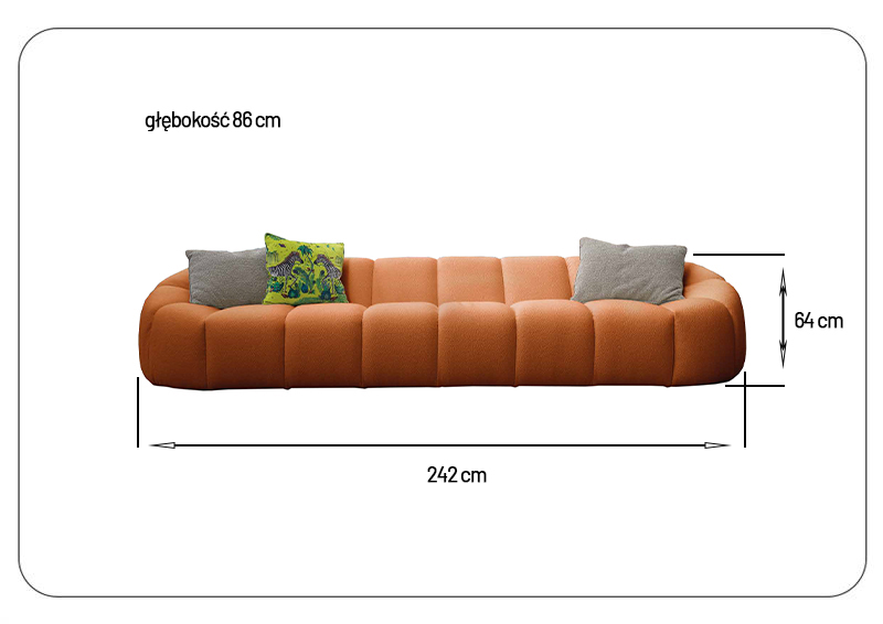 Sofa Ghati to połączenie klasycznego designu z trwałym wykonaniem, które sprawdzi się zarówno w salonie, jak i w pokoju dziennym. Stabilny stelaż z drewna oraz materiału drewnopochodnego zapewnia odpowiednią wytrzymałość i komfort użytkowania przez długi czas.