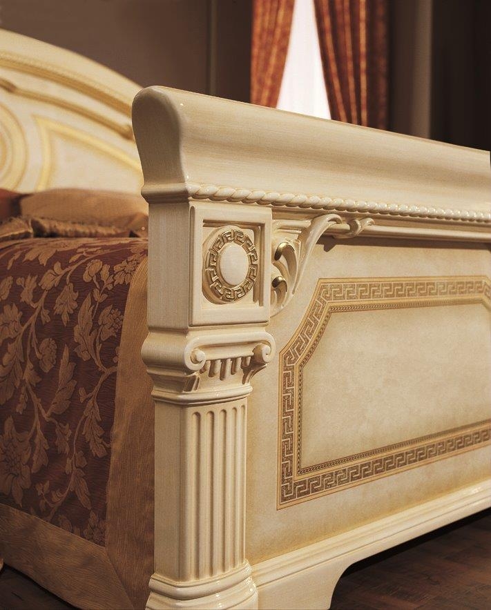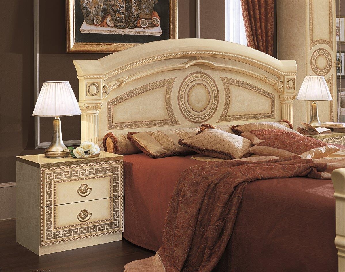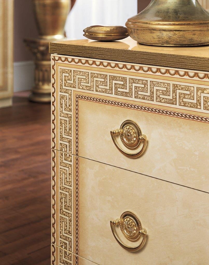 Ekskluzywna włoska sypialnia Aida w eleganckim beżowym kolorze z elementami złota, zdobiona meandrem Versace, to kolekcja mebli do sypialni, które zachwycają swoim wyglądem, a jednocześnie są bardzo praktyczne.