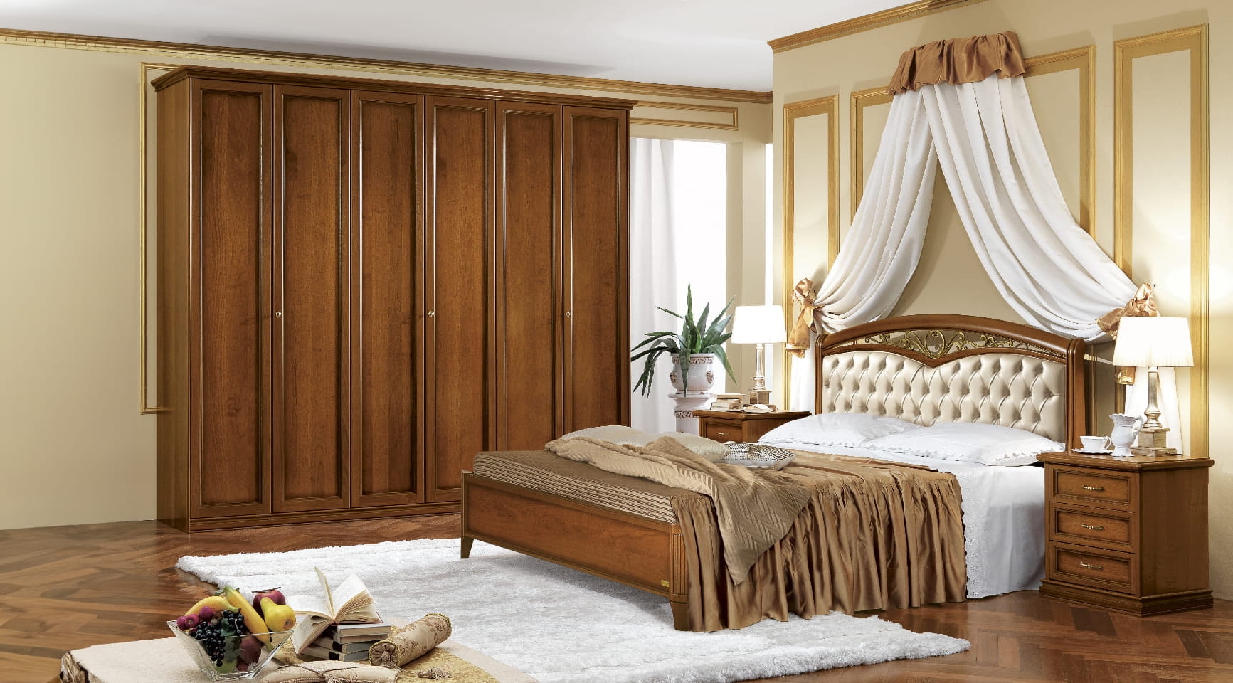 Klasyczna aranżacja sypialni. Meble wykonane z najwyższej jakości materiałów. Uchwyty są małe ale bardzo stylowe.