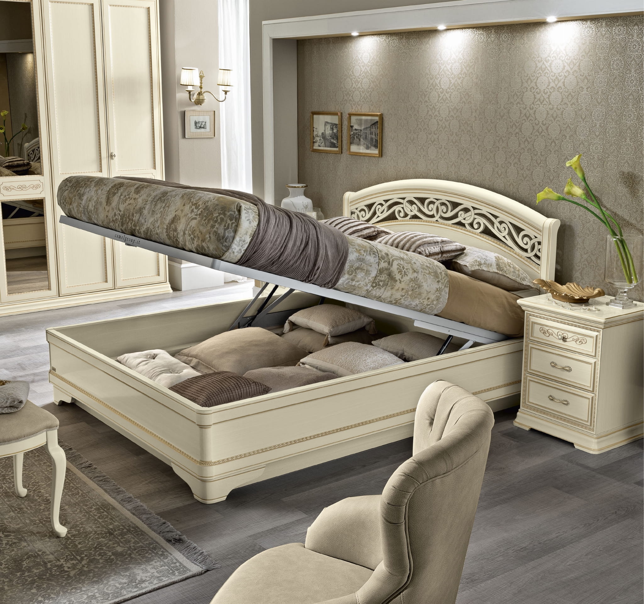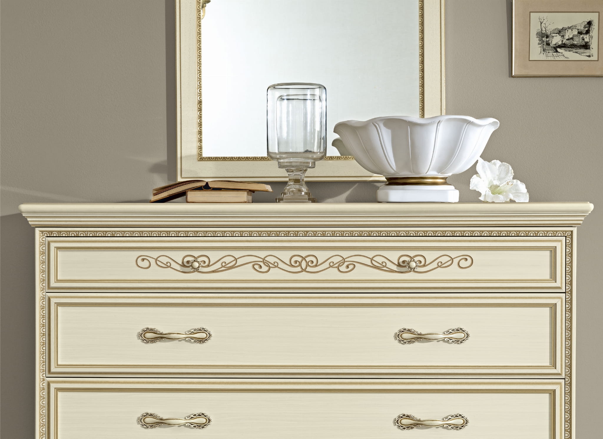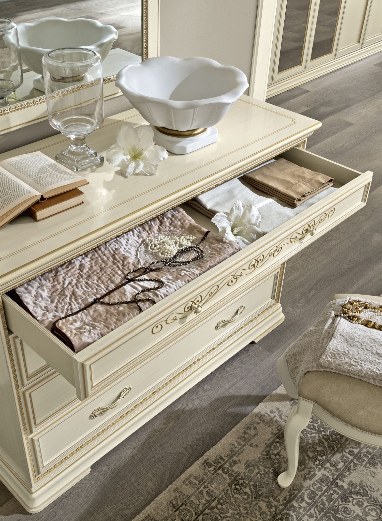 Torriani Avorio to kolekcja reprezentująca klasyczne, włoskie wzornictwo wyrażone harmonijnymi proporcjami. Sypialnia jest wykonana jest z najwyżej jakości materiałów w eleganckim białym kolorze.