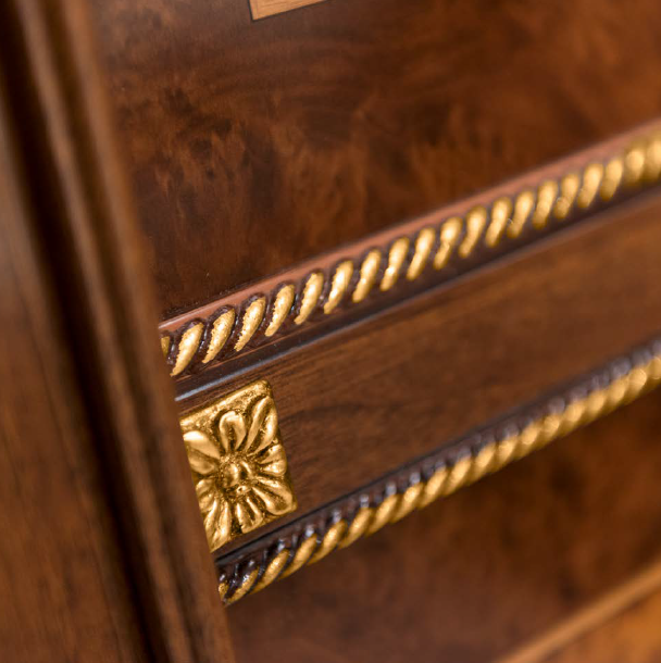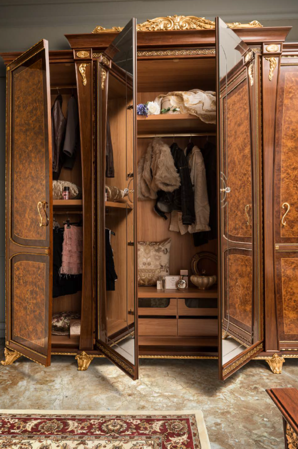 - Złote Dekoracje: Szafa ozdobiona jest przepięknymi złotymi dekoracjami, które dodają jej wyrafinowanego charakteru.