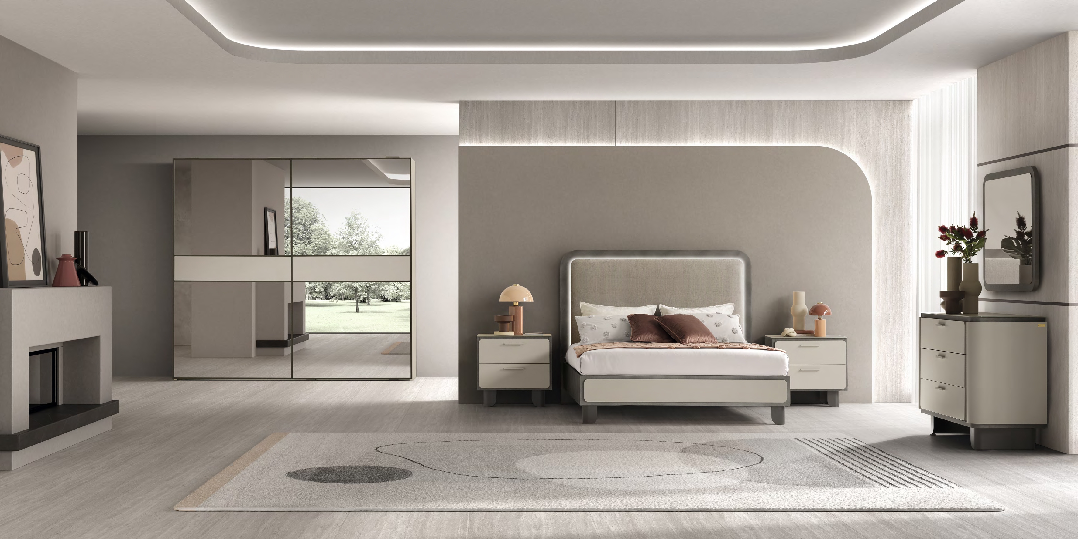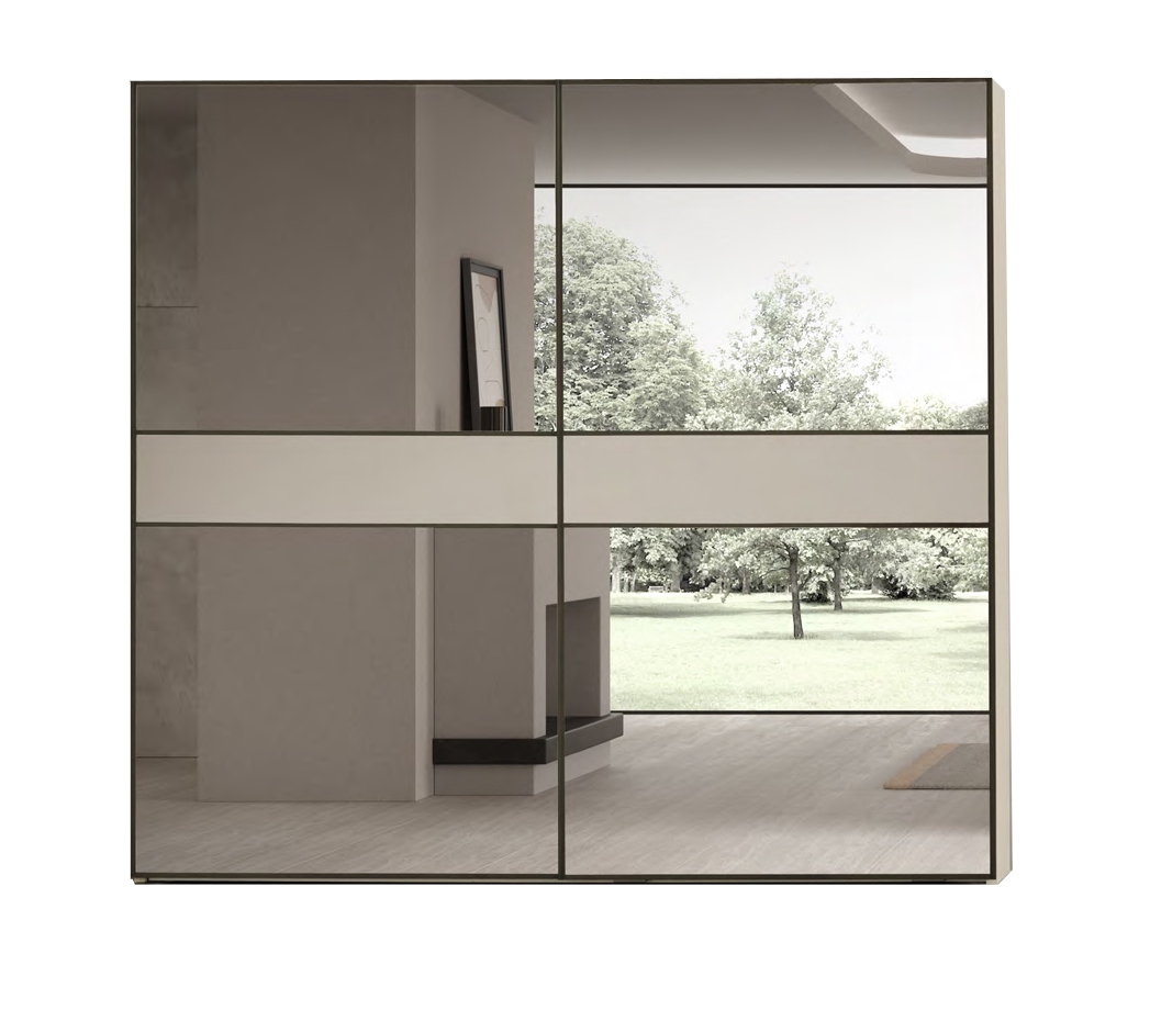 Szafa Perla to stylowy i praktyczny mebel, który idealnie sprawdzi się w nowoczesnych sypialniach i garderobach. Wyposażona w przesuwane drzwi lustrzane, optycznie powiększa przestrzeń, dodając wnętrzu jasności i lekkości. Lustra są nie tylko efektowne, ale także wygodne w codziennym użytkowaniu.