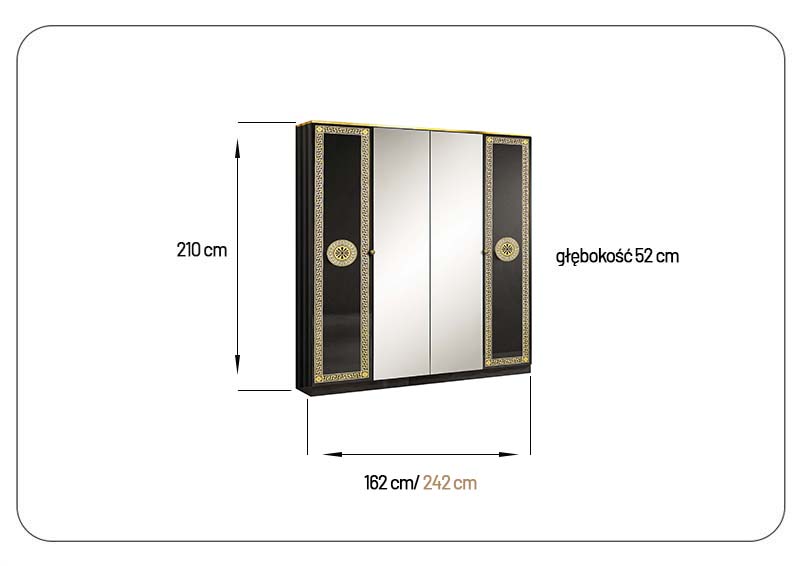 Szafa BC Cleopatra to wyjątkowy mebel, który łączy elegancki wygląd z praktycznym wnętrzem. Stylowe złote uchwyty ozdobione kryształkami nadają jej luksusowego charakteru, dzięki czemu doskonale sprawdzi się w eleganckiej sypialni lub garderobie.