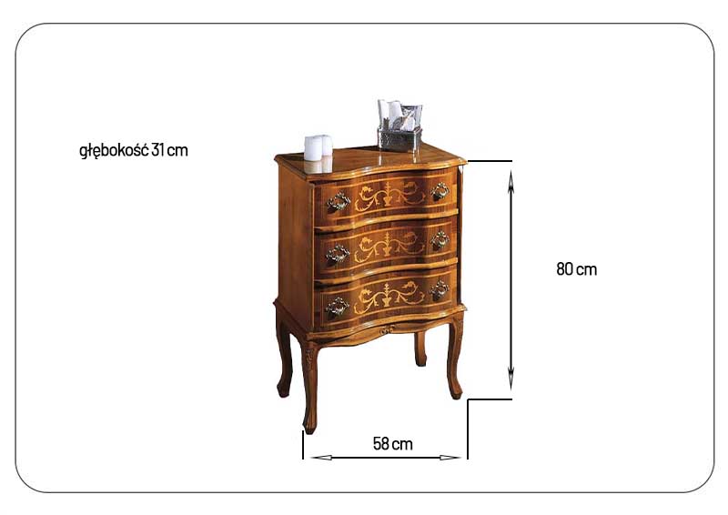 Bardzo stylowa szafka, idealna do przechowywania drobiazgów. Plusem są pojemne szuflady.