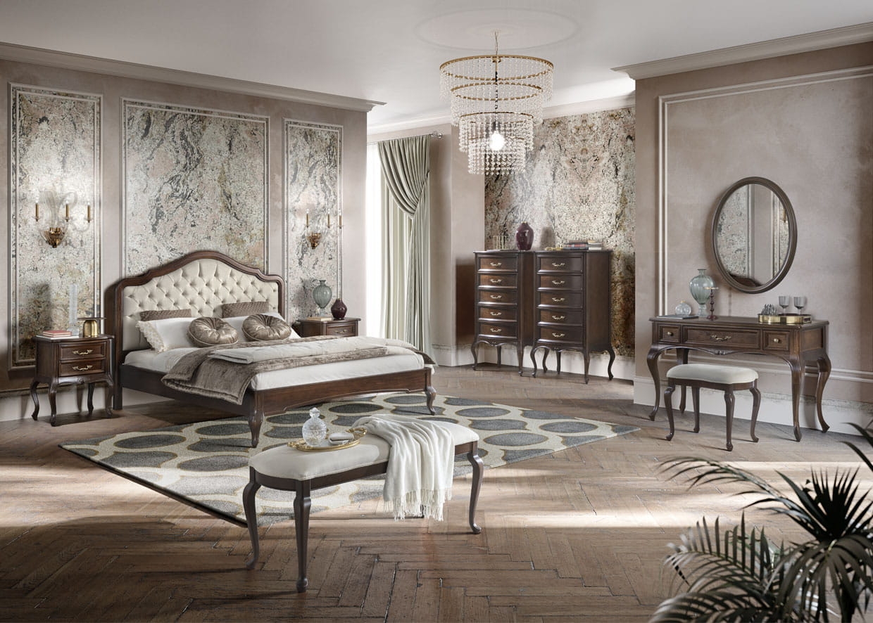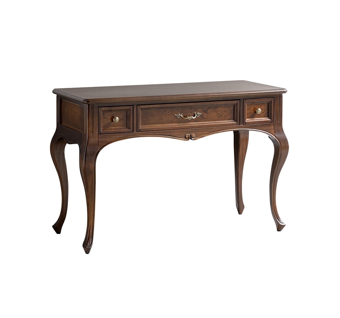 Toaletka dostępna jest w dwóch wersjach – bez zdobień, zachowując prostotę i minimalistyczny urok, lub ze zdobieniem, które stanowią delikatne akcenty lekko muśnięte złotą farbą. To subtelne zdobienie podkreśla naturalne piękno drewna, nadając meblowi subtelnego blasku i wyjątkowego charakteru.