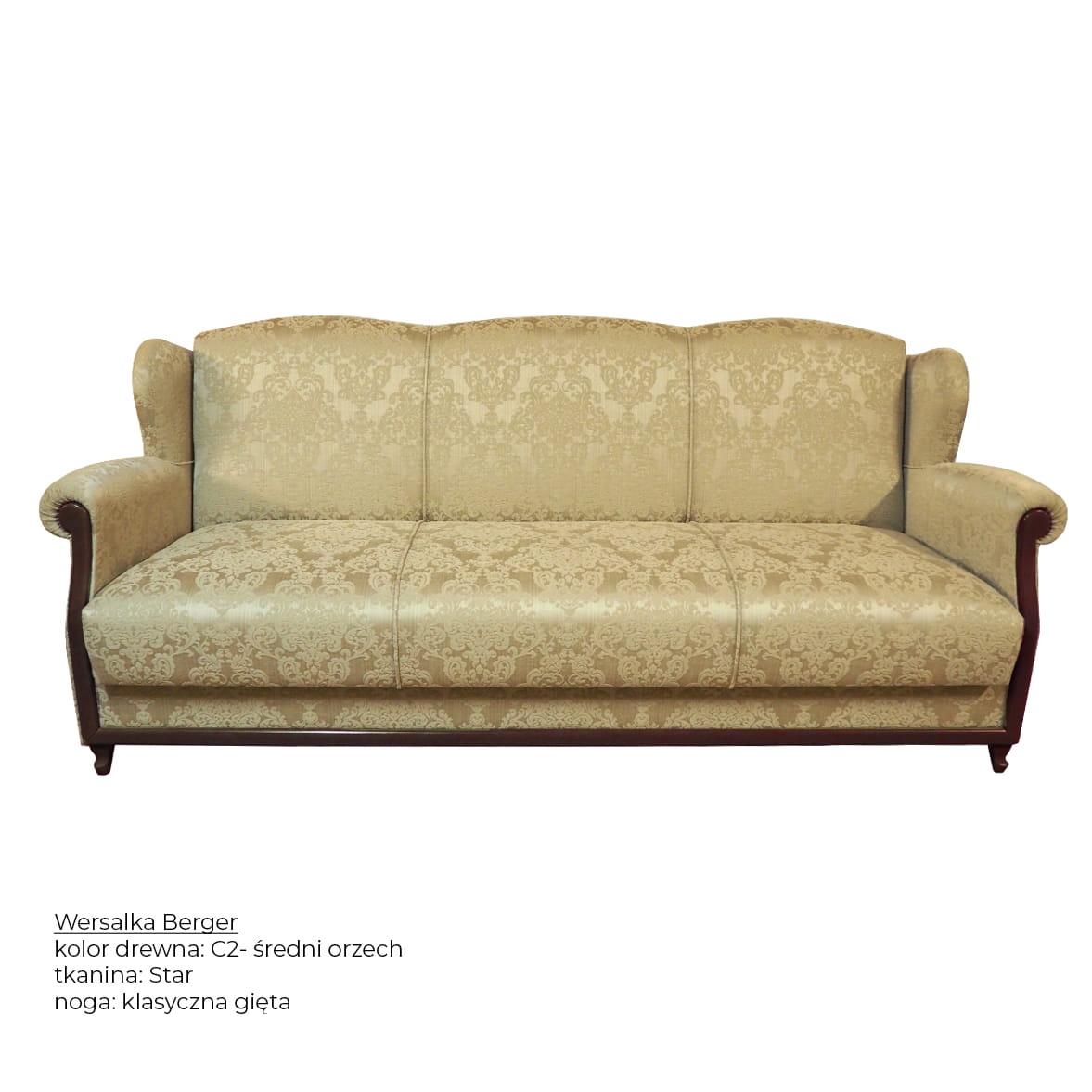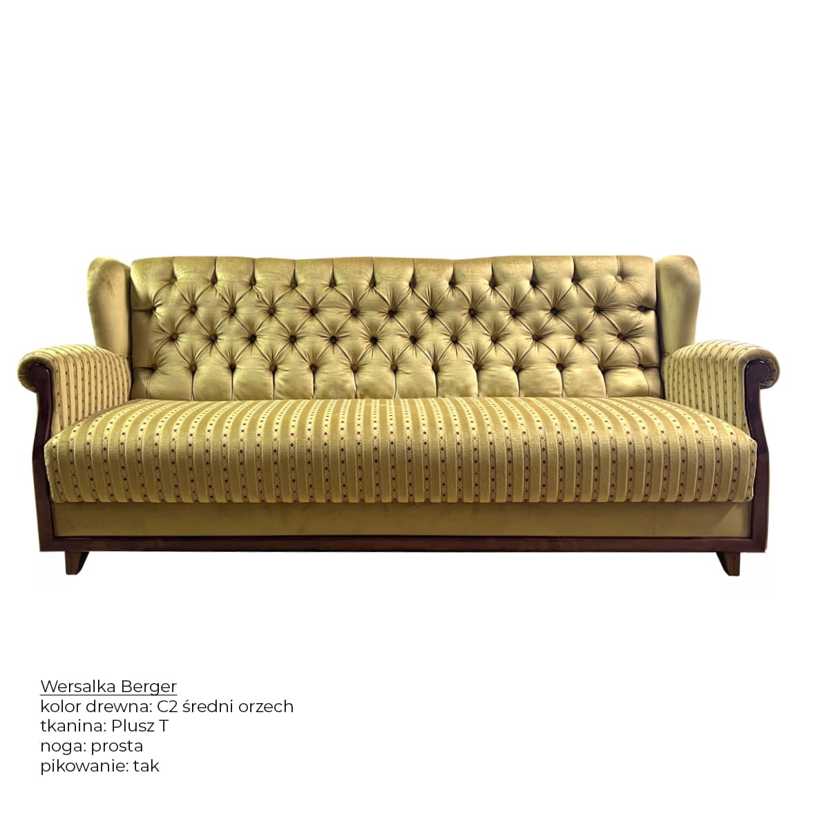 Wersalka Berger to produkt polskiej produkcji — synonim trwałości i precyzji. Jej konstrukcja została wykonana z litego drewna bukowego, co zapewnia stabilność, odporność na uszkodzenia i długowieczność. To mebel, który nie tylko zachwyca wyglądem, ale także służy latami, nie tracąc swoich walorów estetycznych.