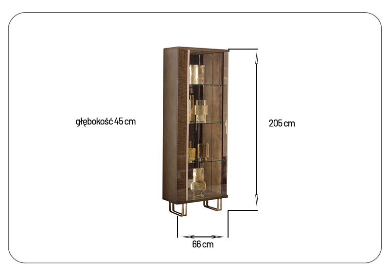 Wzbogacona o brązowe szkło, wzmacnia wizualną głębię i podkreśla wyrafinowany charakter witryny.