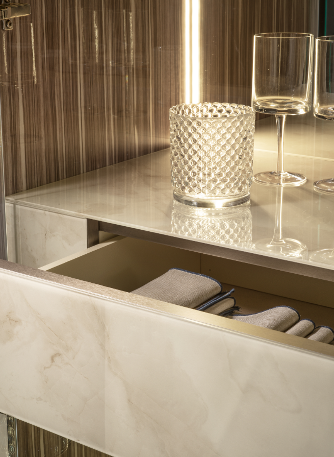 Oryginalne wzornictwo oraz dbałość o szczegóły tworzą mebel, który stanowi nie tylko element użytkowy, ale również artystyczną ozdobę wnętrza. Zaawansowane technologicznie wykończenia sprawiają, że witryna jest nie tylko piękna, ale również trwała, łatwa w utrzymaniu i funkcjonalna.