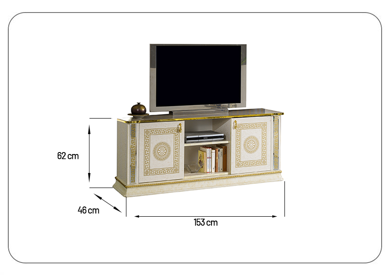 Mebel został zaprojektowany z myślą o wygodnym przechowywaniu oraz uporządkowanej organizacji sprzętu multimedialnego. Szafka posiada dwie zamykane szafki, które umożliwiają dyskretne przechowywanie akcesoriów, kabli czy dokumentów, a także otwartą półkę, idealną na dekoder, konsolę lub odtwarzacz. Dzięki przemyślanej konstrukcji łączy funkcjonalność z nowoczesnym wyglądem.