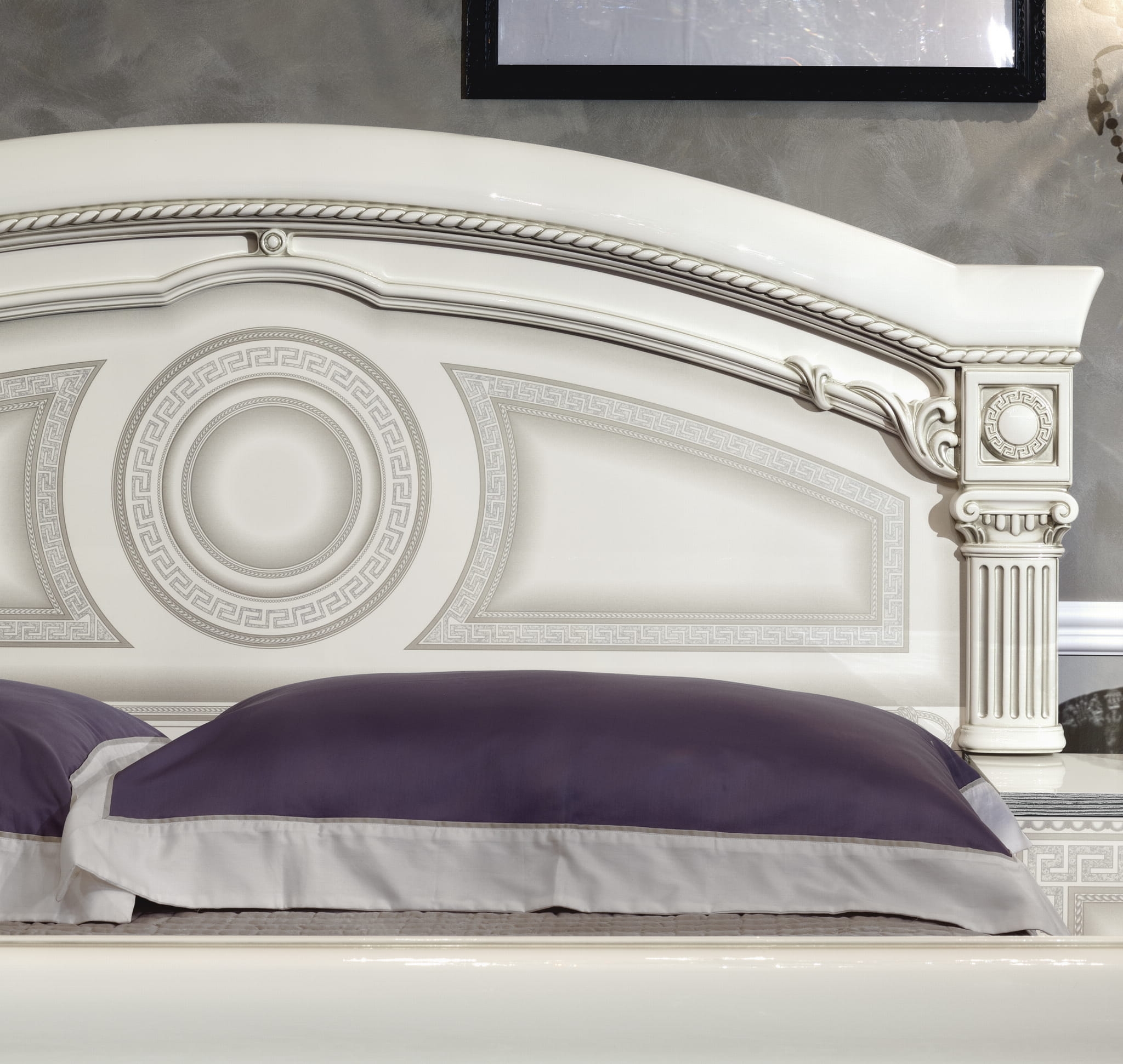 Łóżko zostało starannie wykonane i perfekcyjnie wykończone. Zastosowane w łóżku zdobienia sprawiają, że pomieszczenie nie potrzebuje już żadnych dekoracji. Jeżeli marzysz o sypialni w królewskim stylu, to łóżko Aida jest właśnie dla Ciebie.