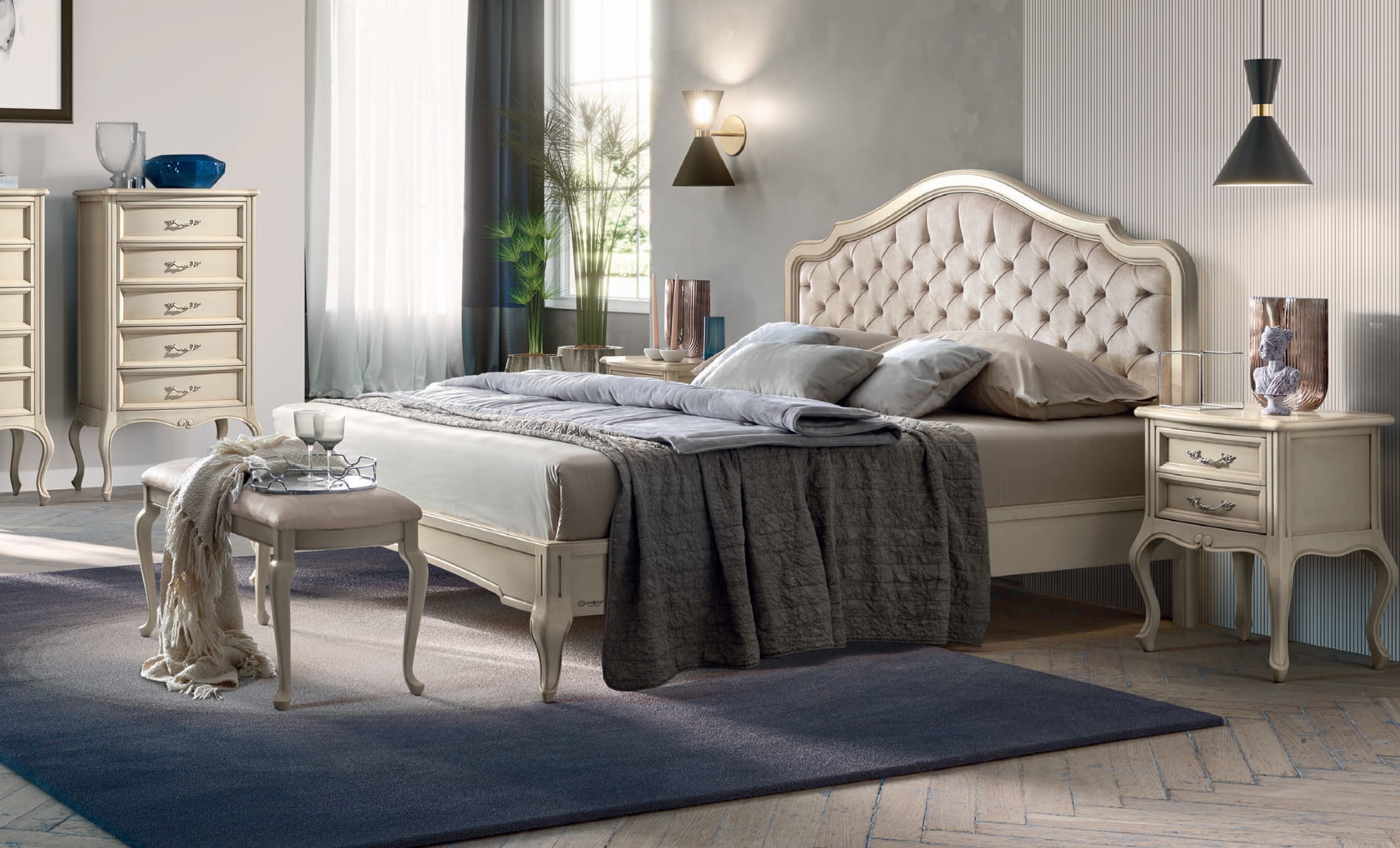 Łóżko z kolekcji Verdi to kwintesencja włoskiego designu i klasycznej elegancji. Jego lekka, stylowa forma wyróżnia się giętymi nogami, inspirowanymi bogactwem pałacowego wzornictwa. Tapicerowany zagłówek zdobi piękne, staranne pikowanie, które dodaje meblowi luksusowego charakteru i wprowadza do wnętrza nutę wyrafinowania.